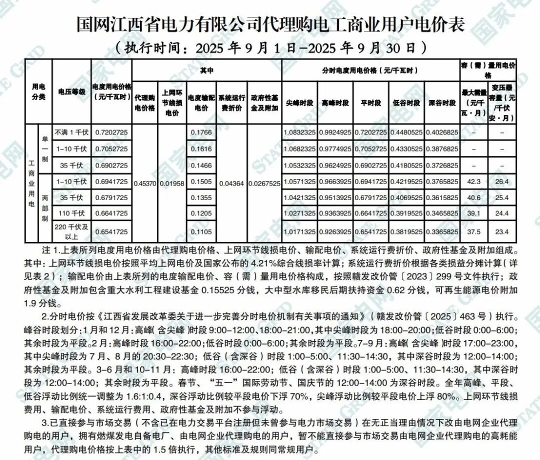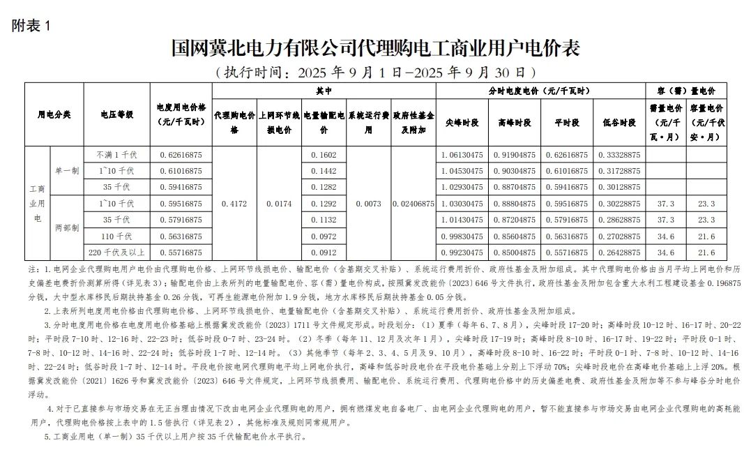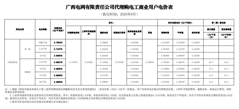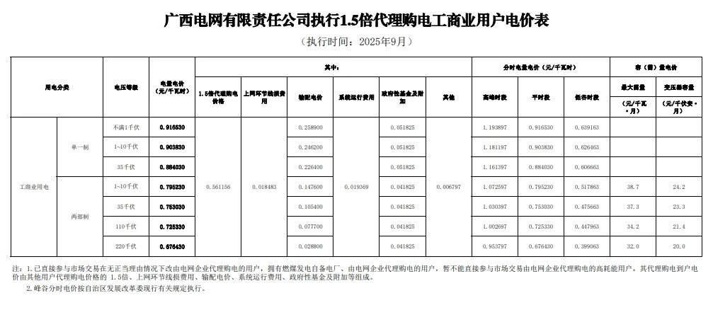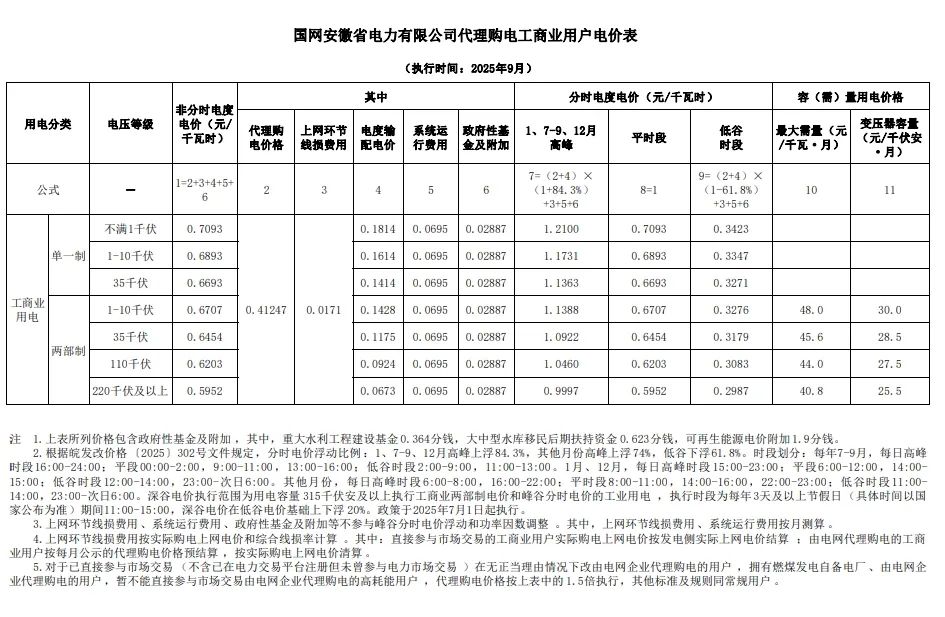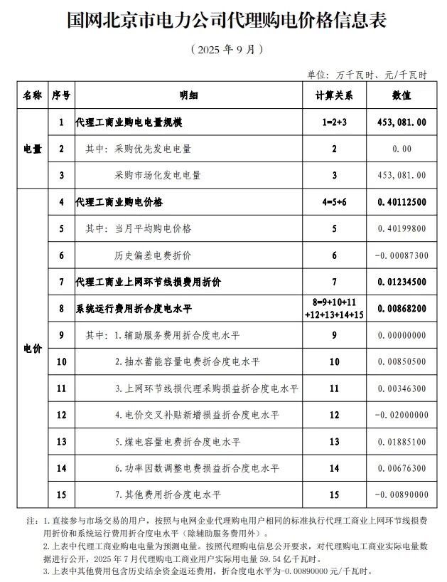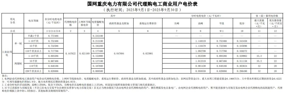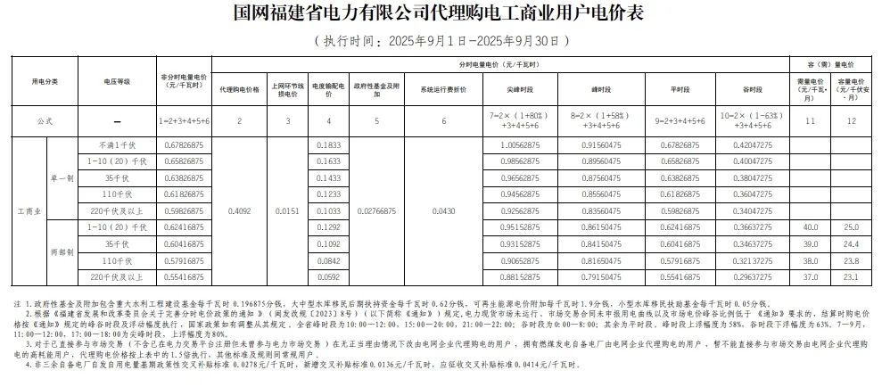 以下为2025年9月各地电网企业代理购电价格表,顺序依次为:江苏、安徽、广东、山东、山西、北京、河北、冀北、河南、浙江、上海、重庆、四川、黑龙江、辽宁、吉林、内蒙古东部、内蒙古电力集团、江西、湖北、湖南、青海、宁夏、陕西、天津、甘肃、新疆、广西、海南、贵州、云南、深圳、福建。