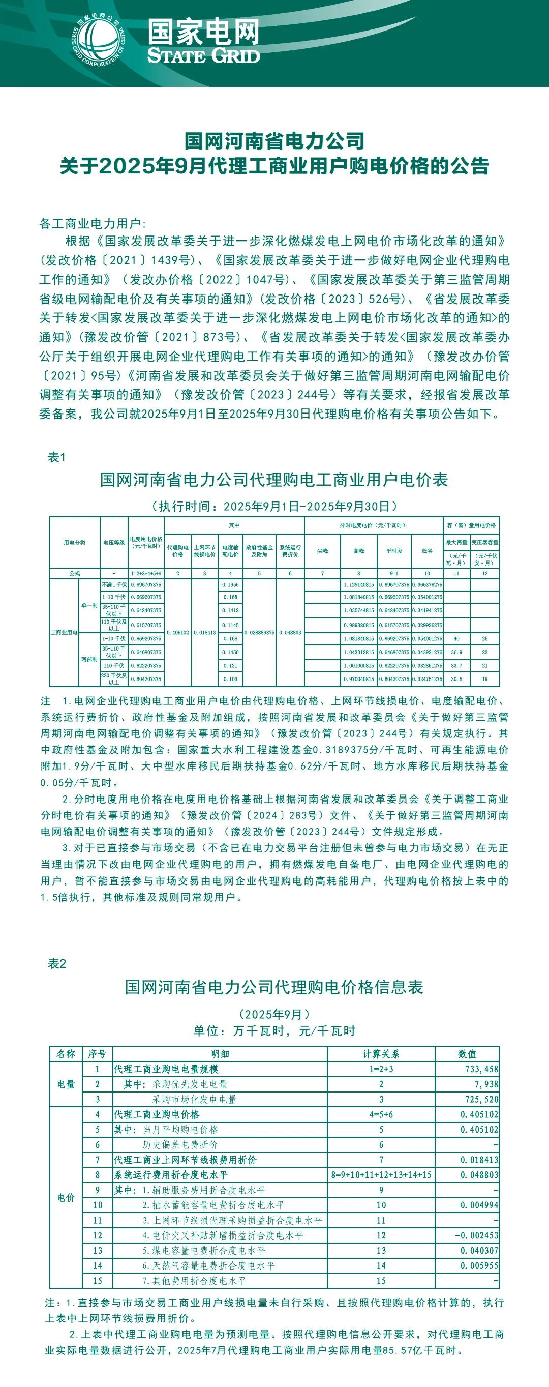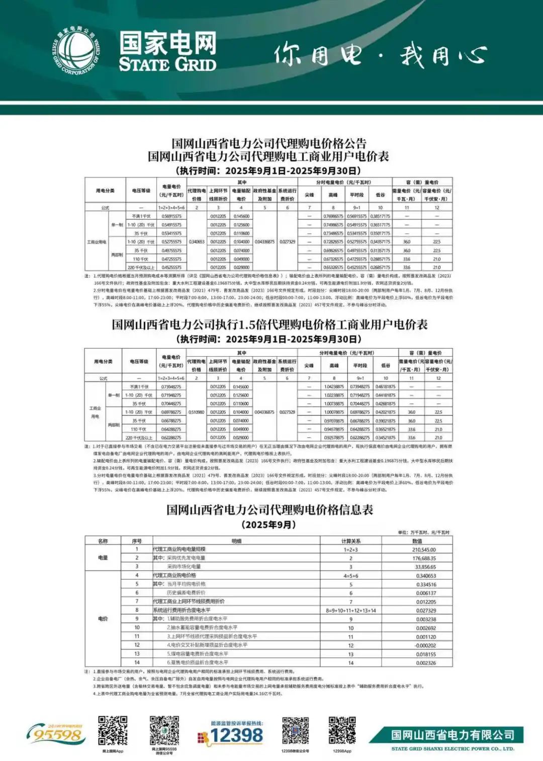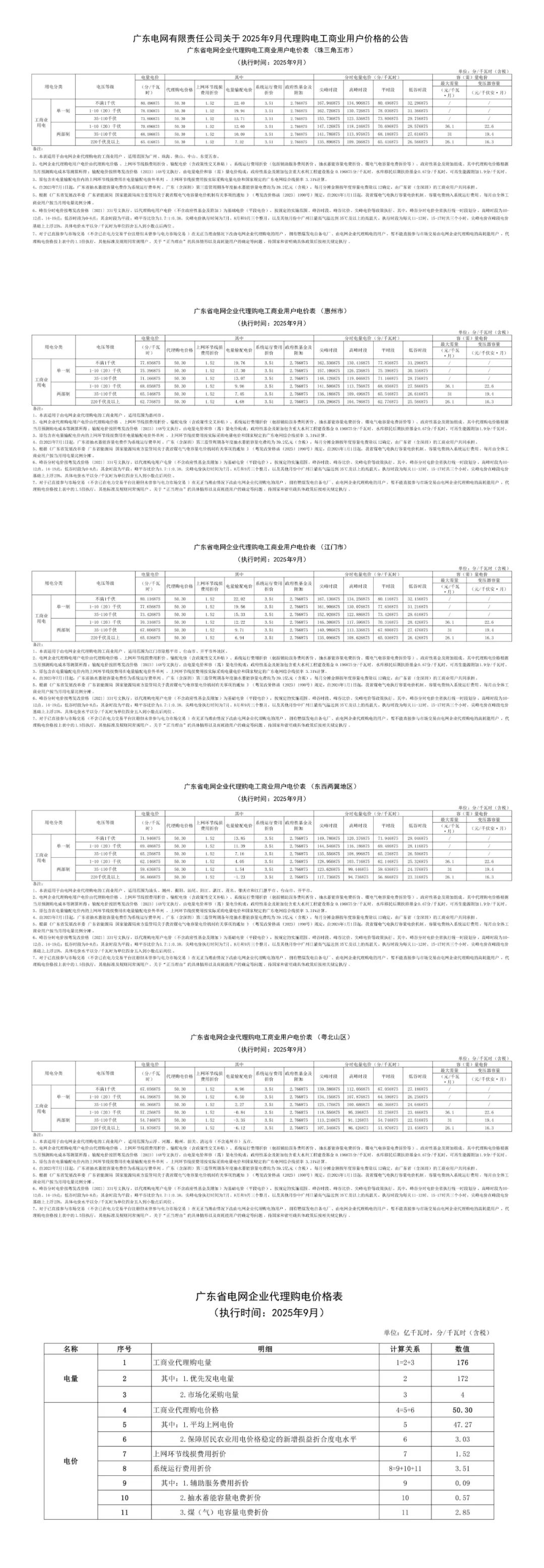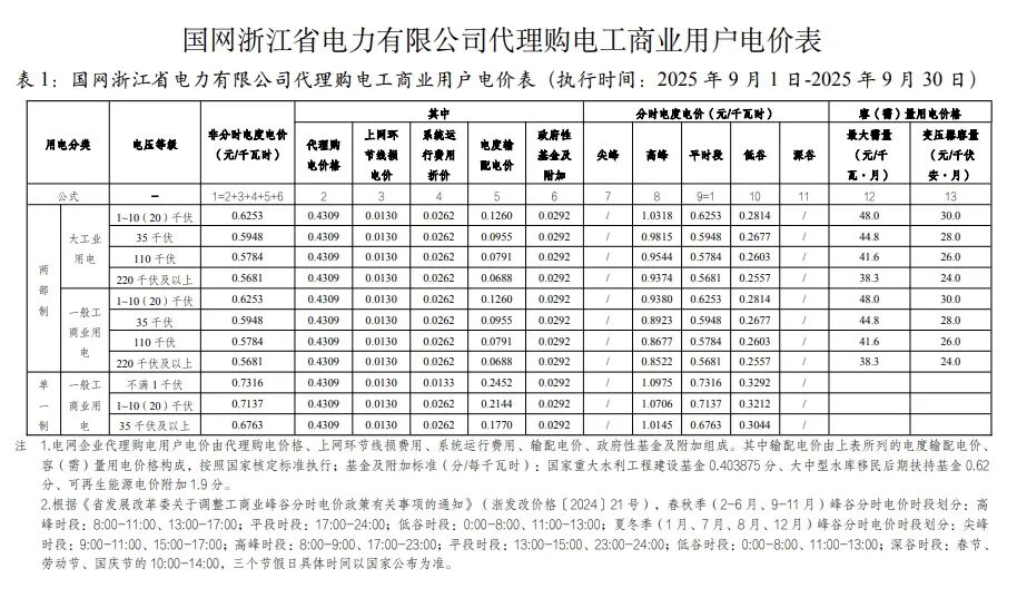 以下为2025年9月各地电网企业代理购电价格表,顺序依次为:江苏、安徽、广东、山东、山西、北京、河北、冀北、河南、浙江、上海、重庆、四川、黑龙江、辽宁、吉林、内蒙古东部、内蒙古电力集团、江西、湖北、湖南、青海、宁夏、陕西、天津、甘肃、新疆、广西、海南、贵州、云南、深圳、福建。