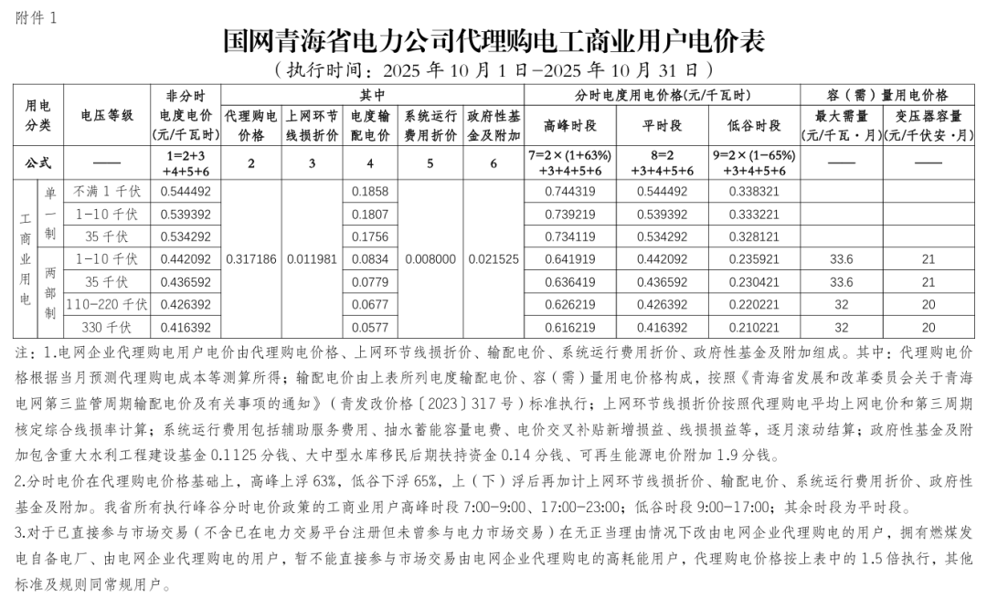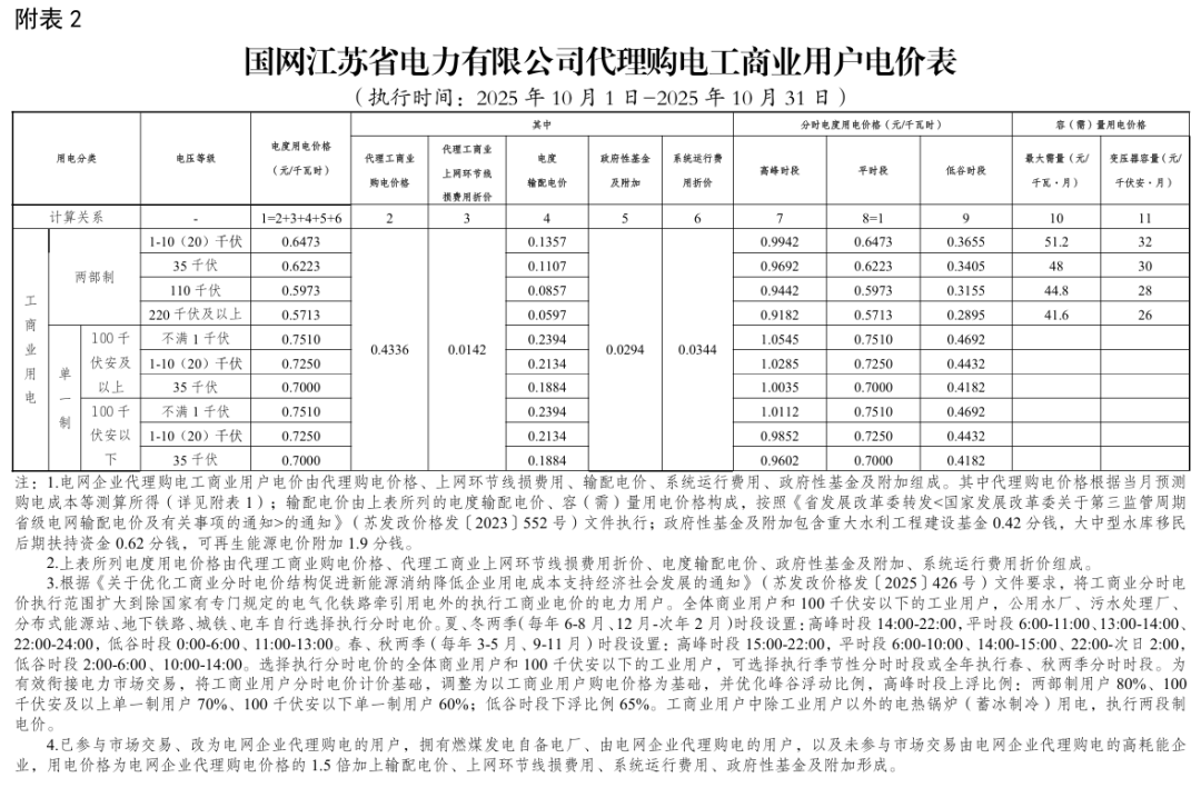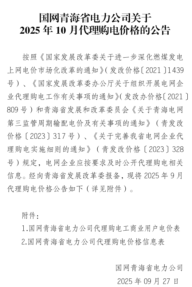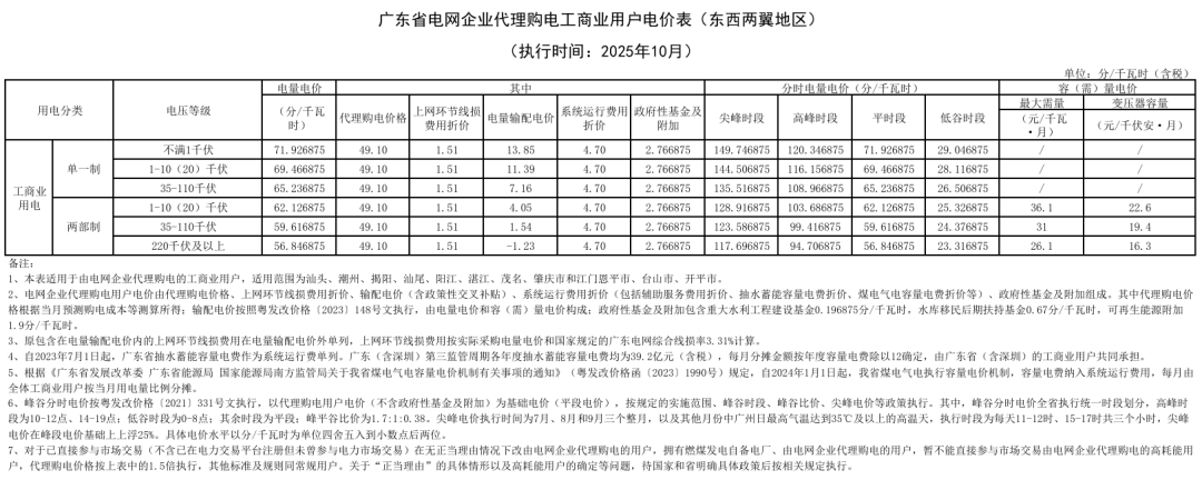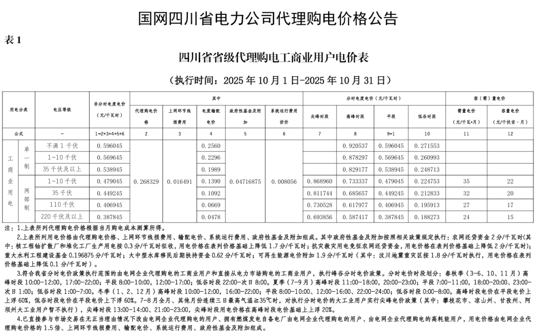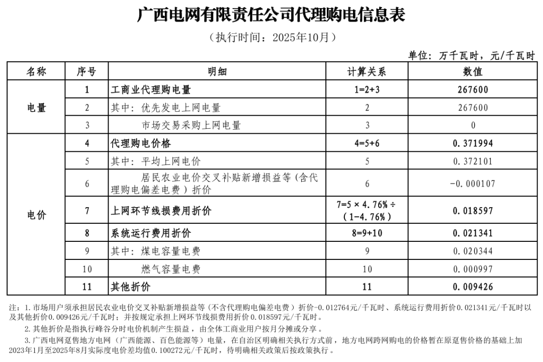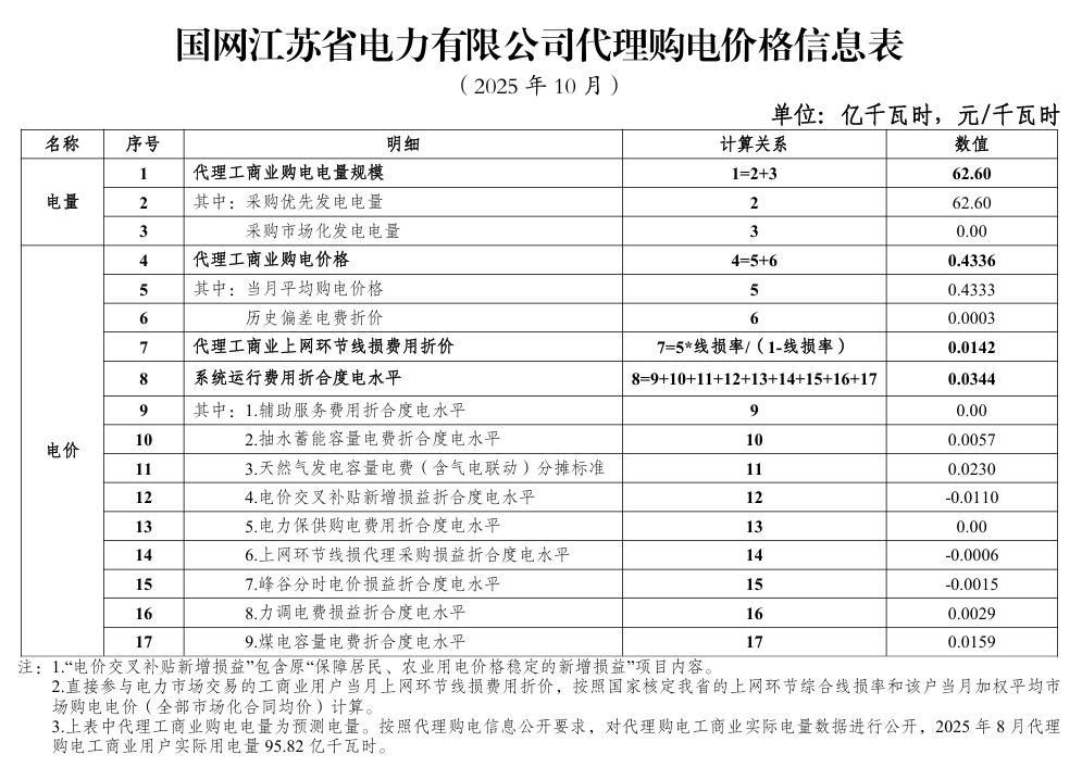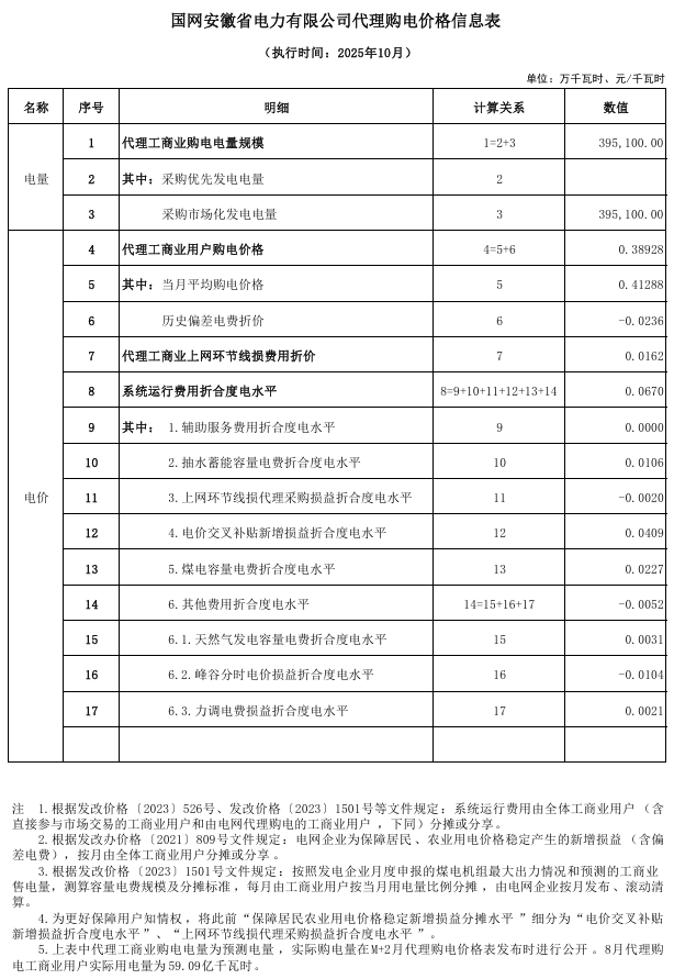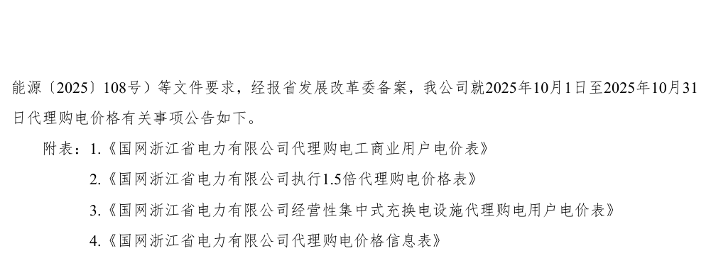 以下为2025年10月各地电网企业代理购电价格表,顺序依次为:江苏、安徽、广东、山东、山西、北京、河北、冀北、浙江、上海、重庆、四川、黑龙江、辽宁、内蒙古东部、江西、湖北、湖南、青海、宁夏、陕西、天津、甘肃、新疆、广西、海南、云南、深圳、福建。(河南、吉林、蒙西、贵州暂未公布)