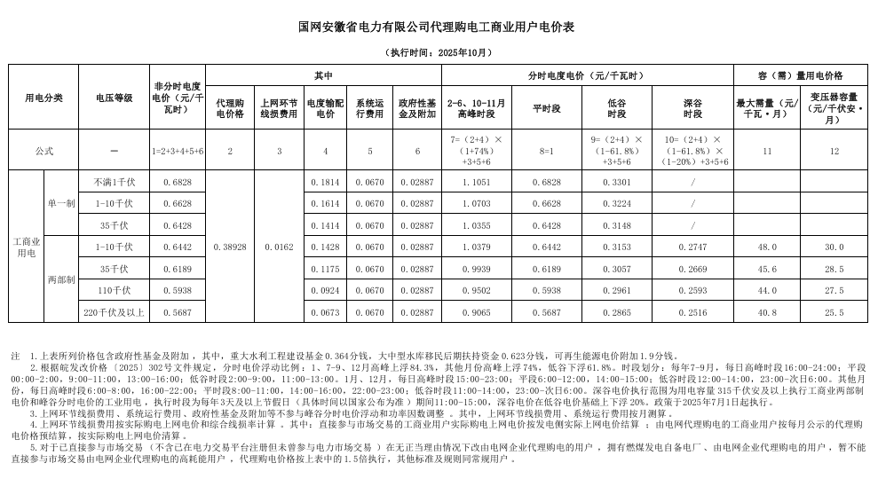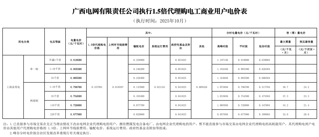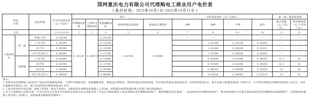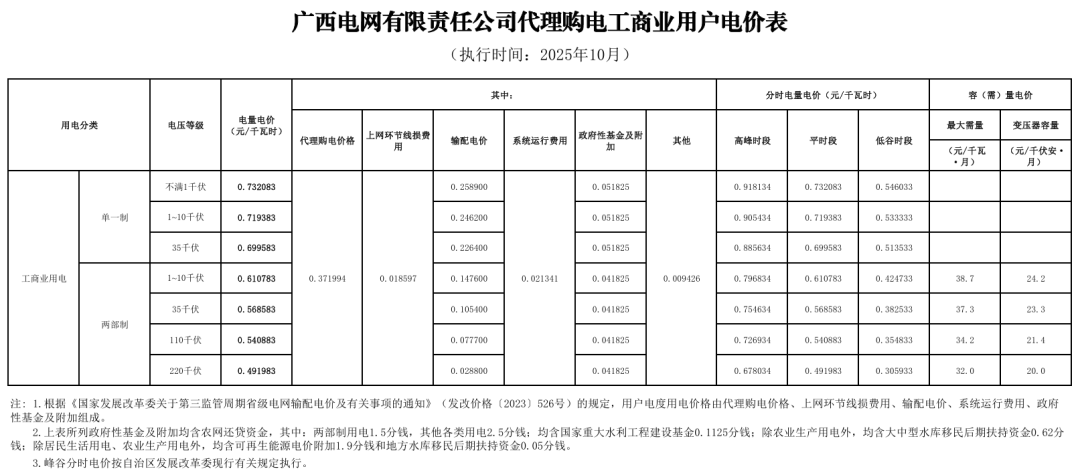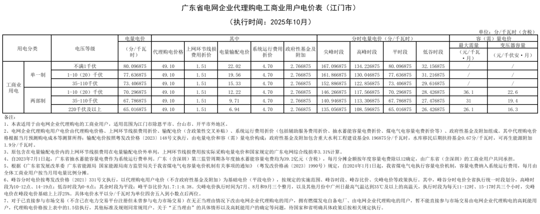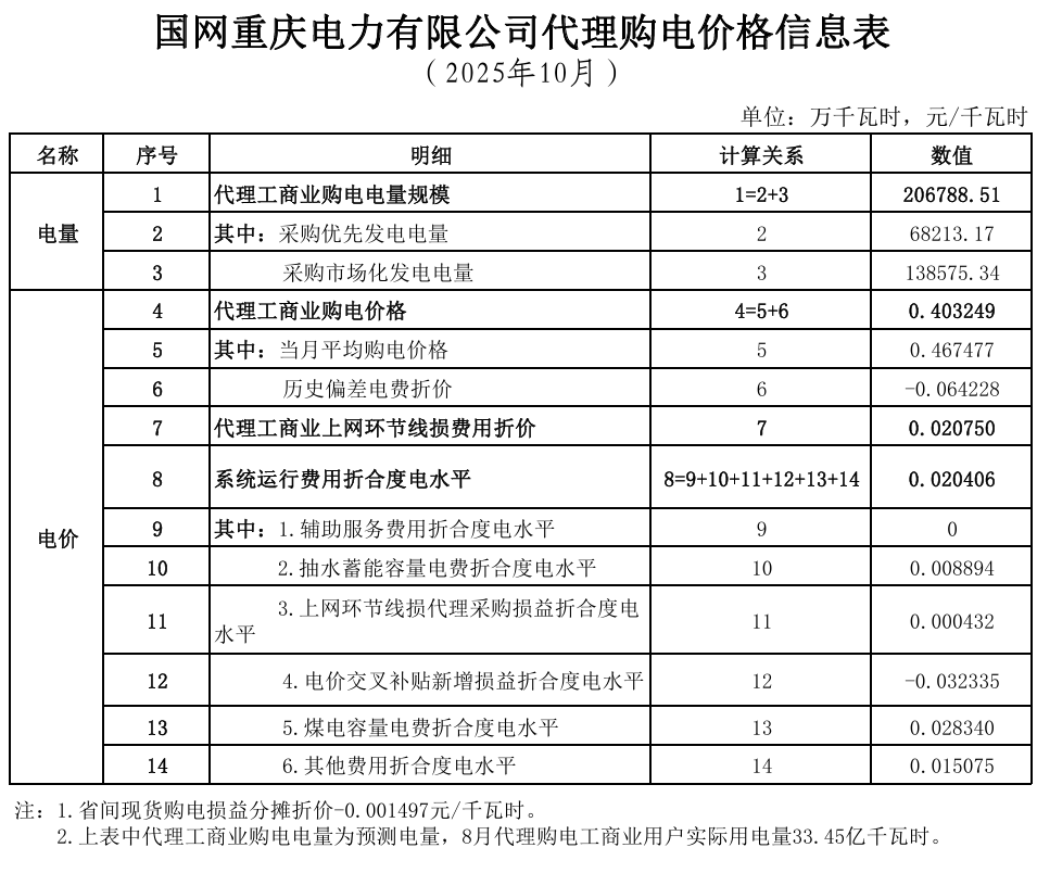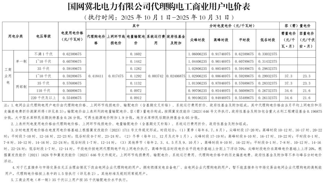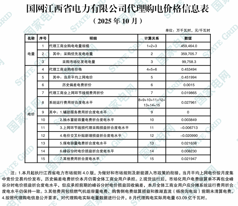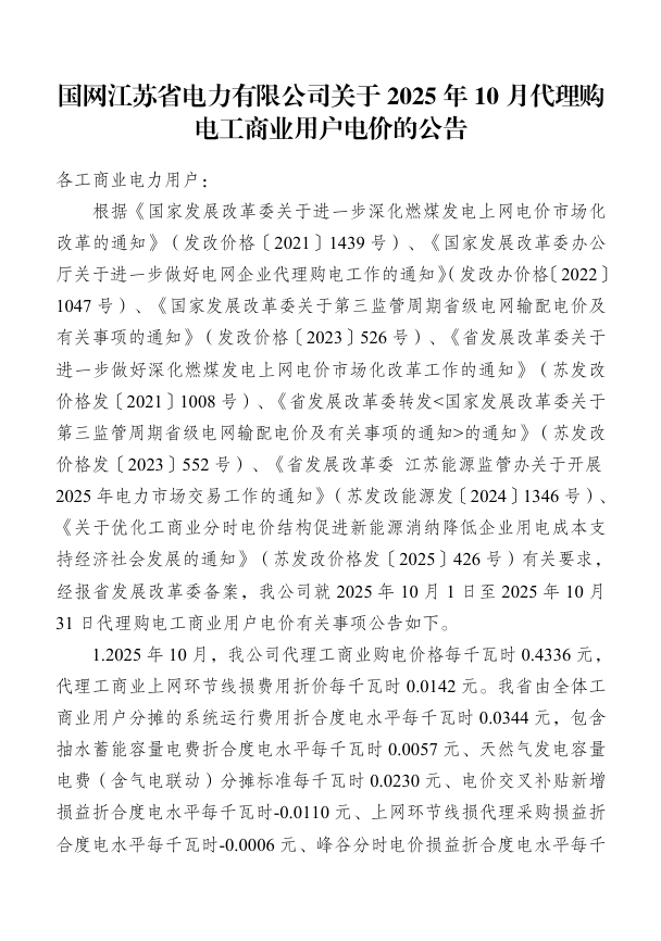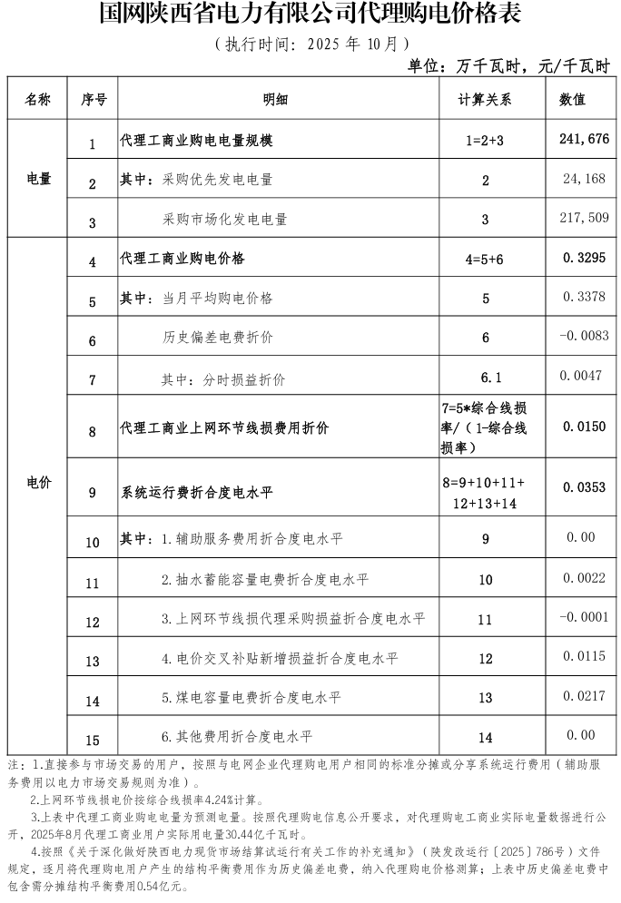 以下为2025年10月各地电网企业代理购电价格表,顺序依次为:江苏、安徽、广东、山东、山西、北京、河北、冀北、浙江、上海、重庆、四川、黑龙江、辽宁、内蒙古东部、江西、湖北、湖南、青海、宁夏、陕西、天津、甘肃、新疆、广西、海南、云南、深圳、福建。(河南、吉林、蒙西、贵州暂未公布)