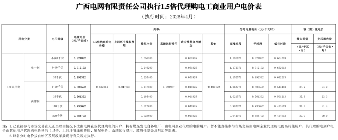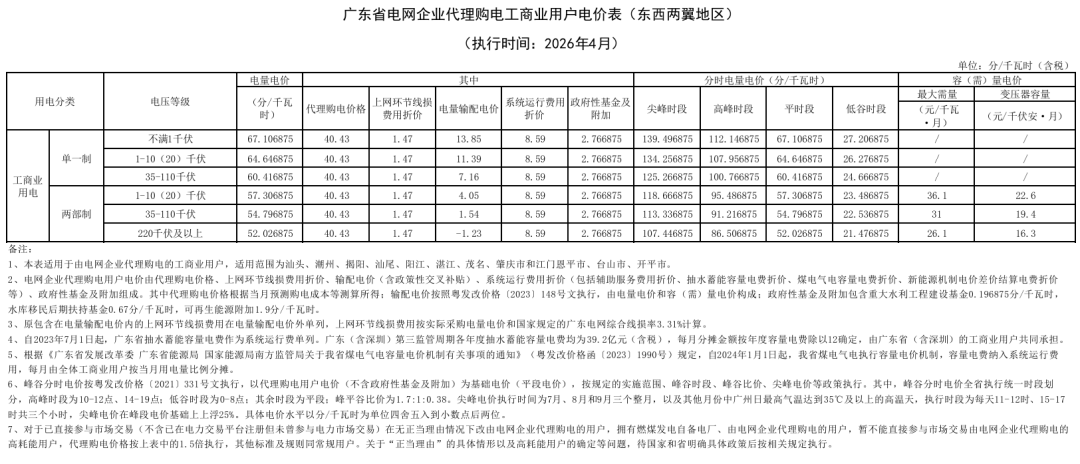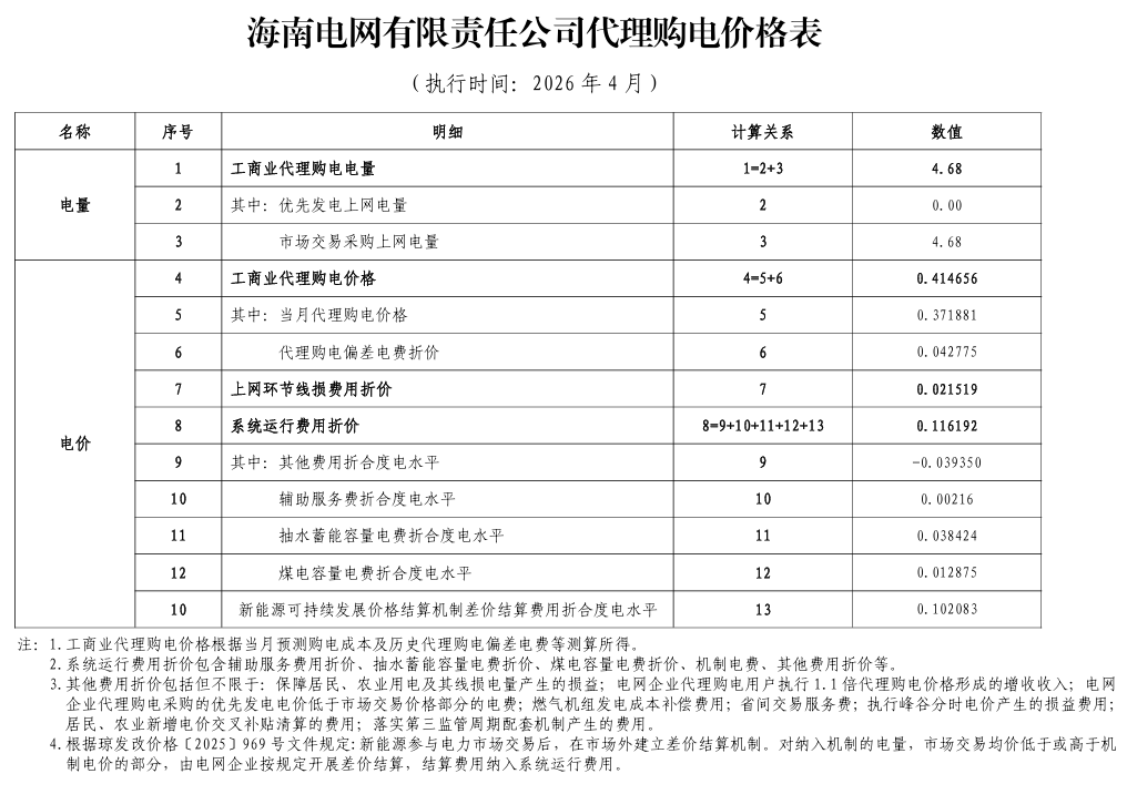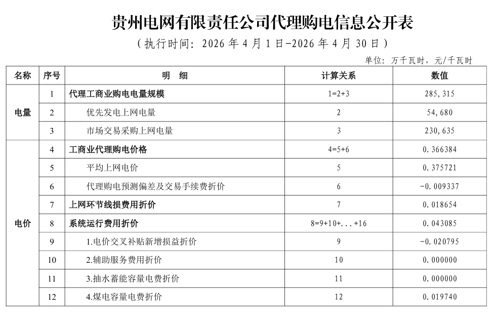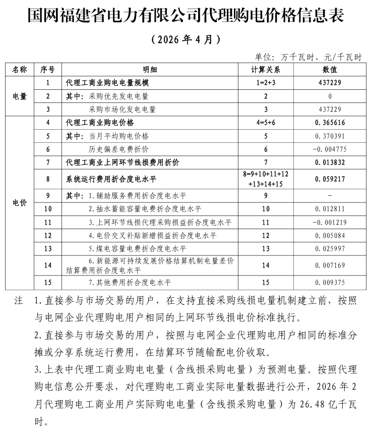 以下为2026年4月各地电网企业代理购电价格表,顺序依次为:江苏、安徽、广东、山东、山西、北京、河北、冀北、浙江、上海、重庆、四川、黑龙江、辽宁、吉林、内蒙古东部、内蒙古电力集团、江西、湖北、湖南、青海、宁夏、陕西、天津、甘肃、新疆、广西、海南、云南、贵州、深圳、福建。(河南暂未公布)