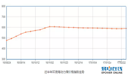 本报告期(2017年3月1日至3月7日),环渤海动力煤价格指数报收于593元/吨,再度上涨,环比上涨4元/吨。