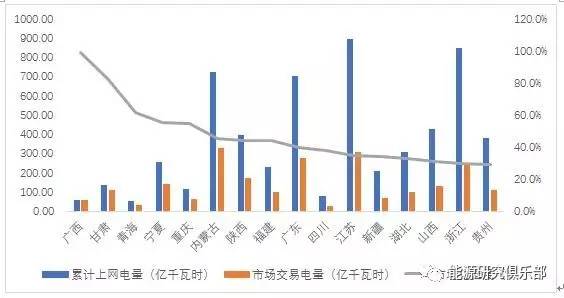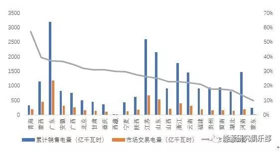 图2 上半年分省交易电量及销售电量市场化率图
