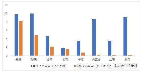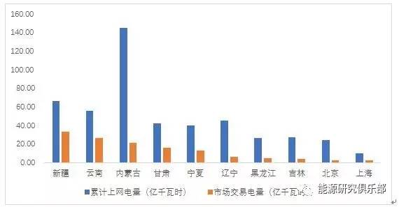 上半年,大型发电集团风电上网电量市场化率达到30%以上的省份有5个,分别为青海、新疆、云南、甘肃和宁夏,市场化率分别达到了100%、50.5%、47.6%、38.4%和31.8%。