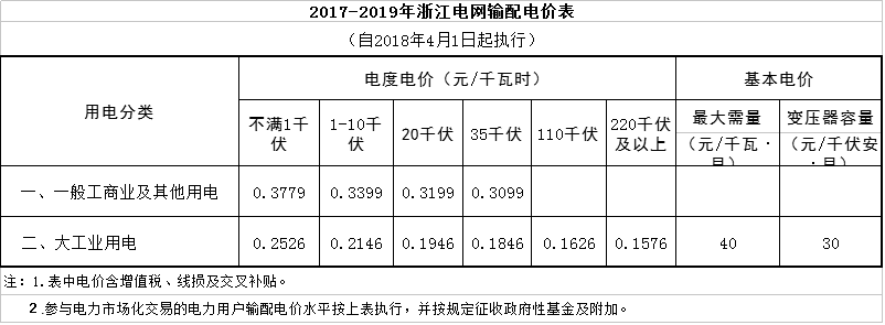 浙江省物价局日前发布了《关于降低一般工商业电价有关事项的通知》,自2018年4月1日起,降低我省一般工商业及其他用电目录电价和输配电价每千瓦时3.3分钱(含税)。详情如下: