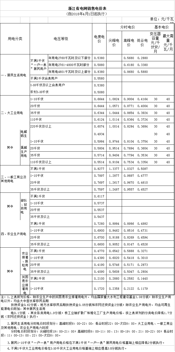 附件:1.浙江省电网销售电价表