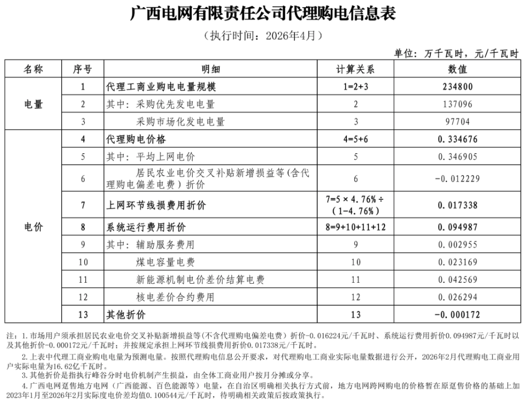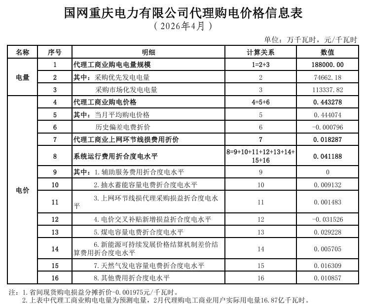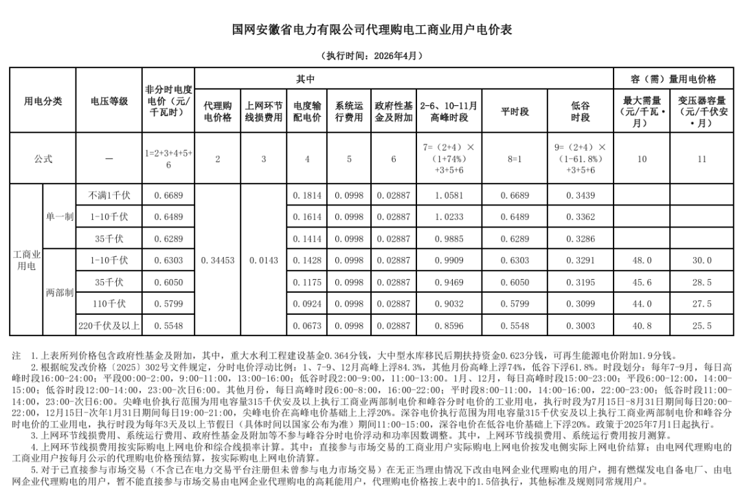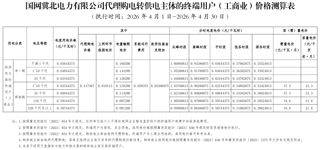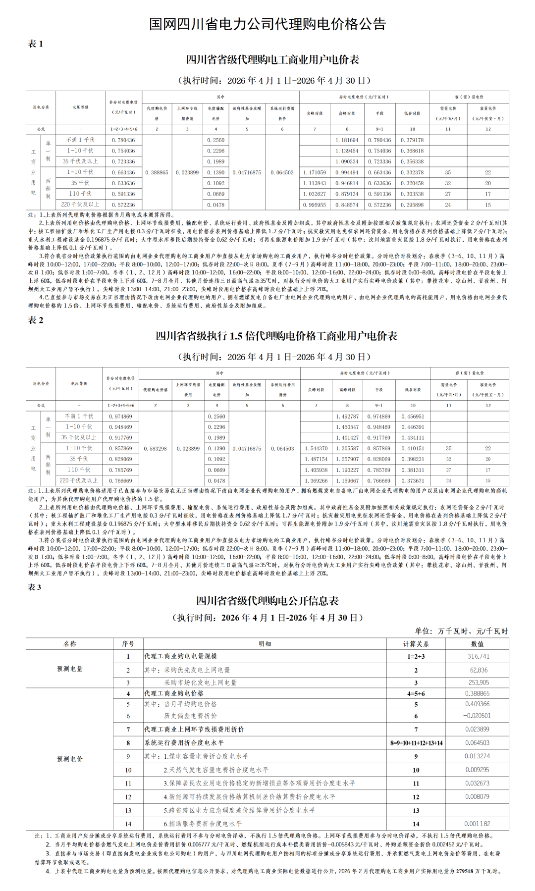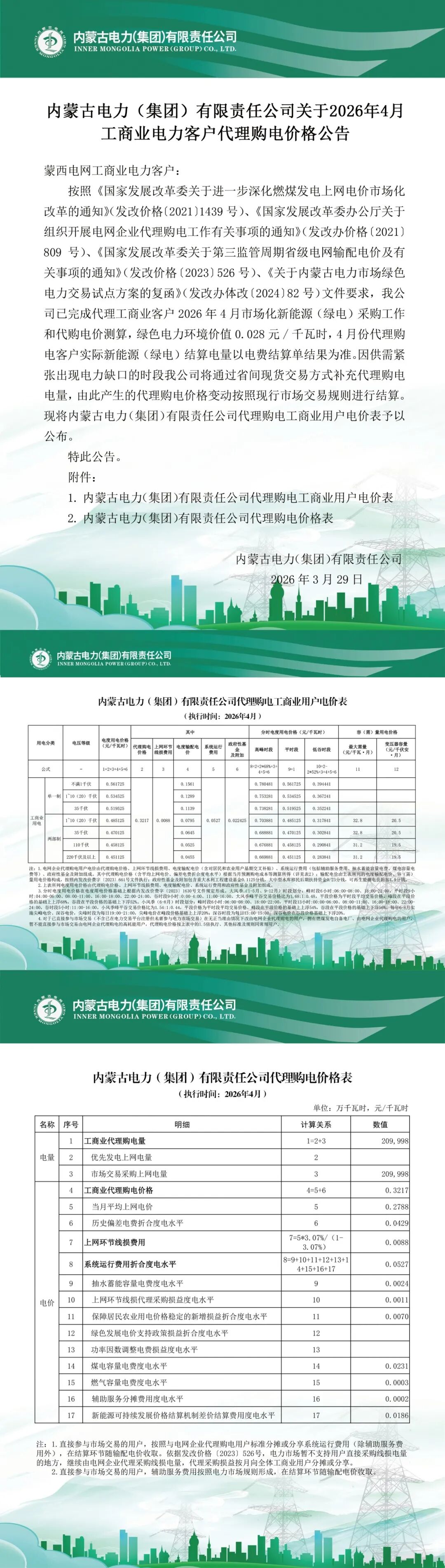 以下为2026年4月各地电网企业代理购电价格表,顺序依次为:江苏、安徽、广东、山东、山西、北京、河北、冀北、浙江、上海、重庆、四川、黑龙江、辽宁、吉林、内蒙古东部、内蒙古电力集团、江西、湖北、湖南、青海、宁夏、陕西、天津、甘肃、新疆、广西、海南、云南、贵州、深圳、福建。(河南暂未公布)